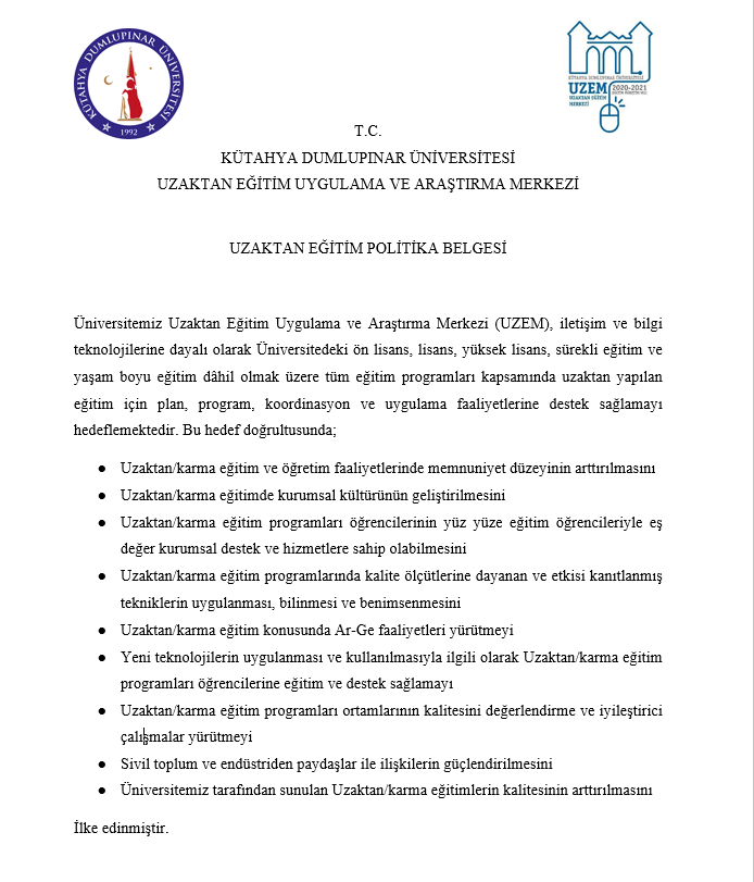 UZEM Politika Belgesi